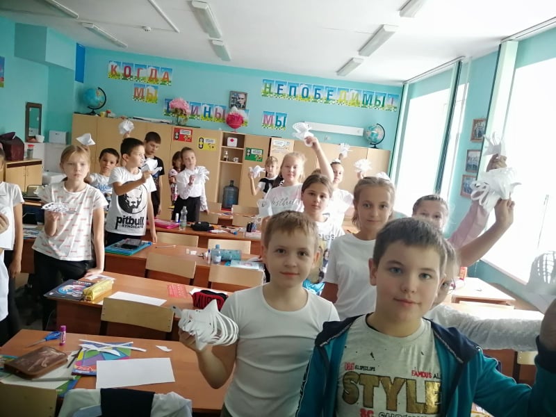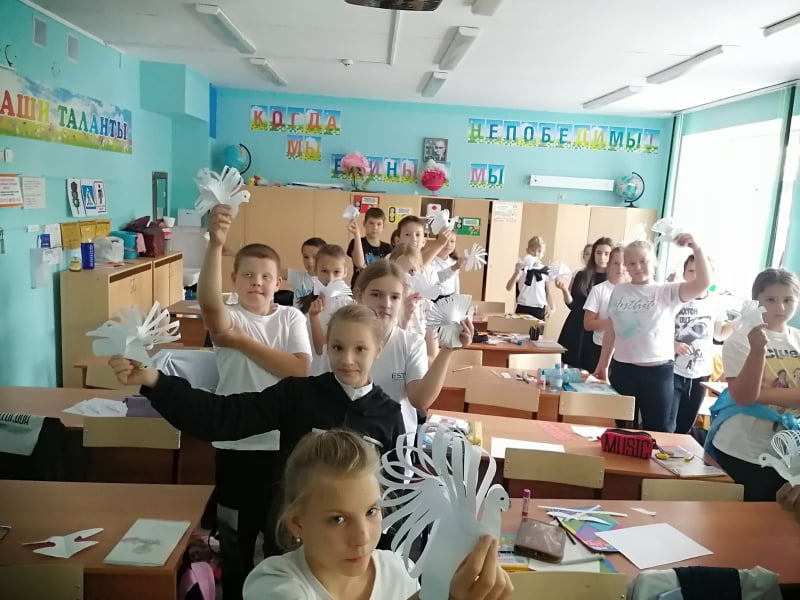 Юнармейцы 4 "А" класса Павловского лицея участвуют в акции "Голубь мира"