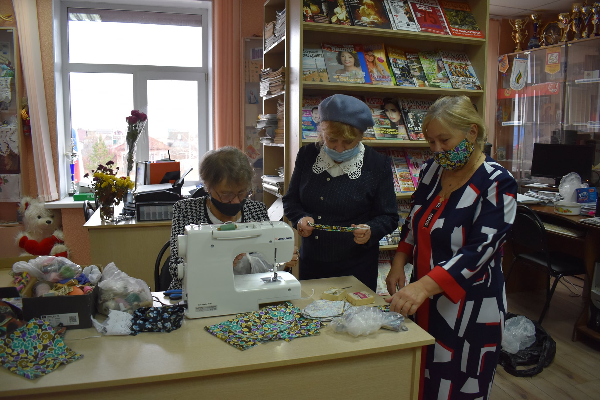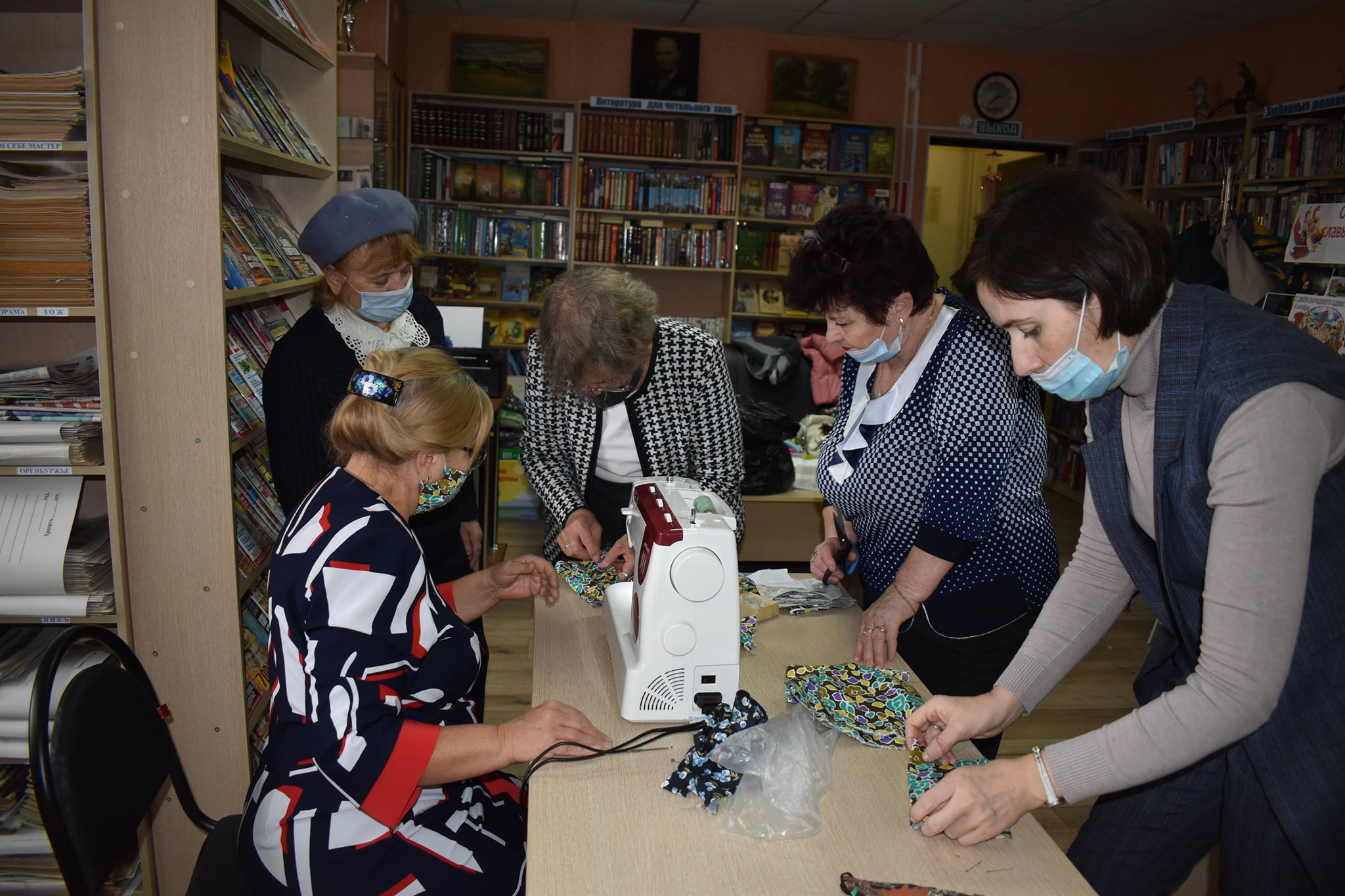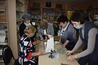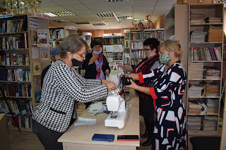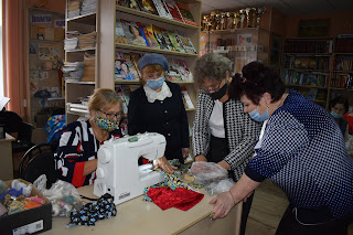 23 октября инициативная группа Совета женщин села П-Покровка собралась в библиотеке на мастер-класс по пошиву масок для пожилых людей.