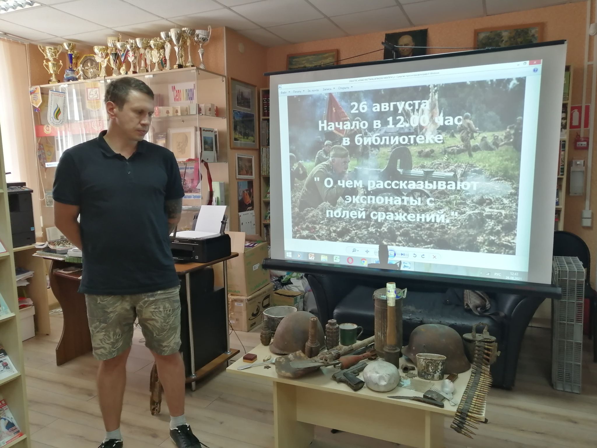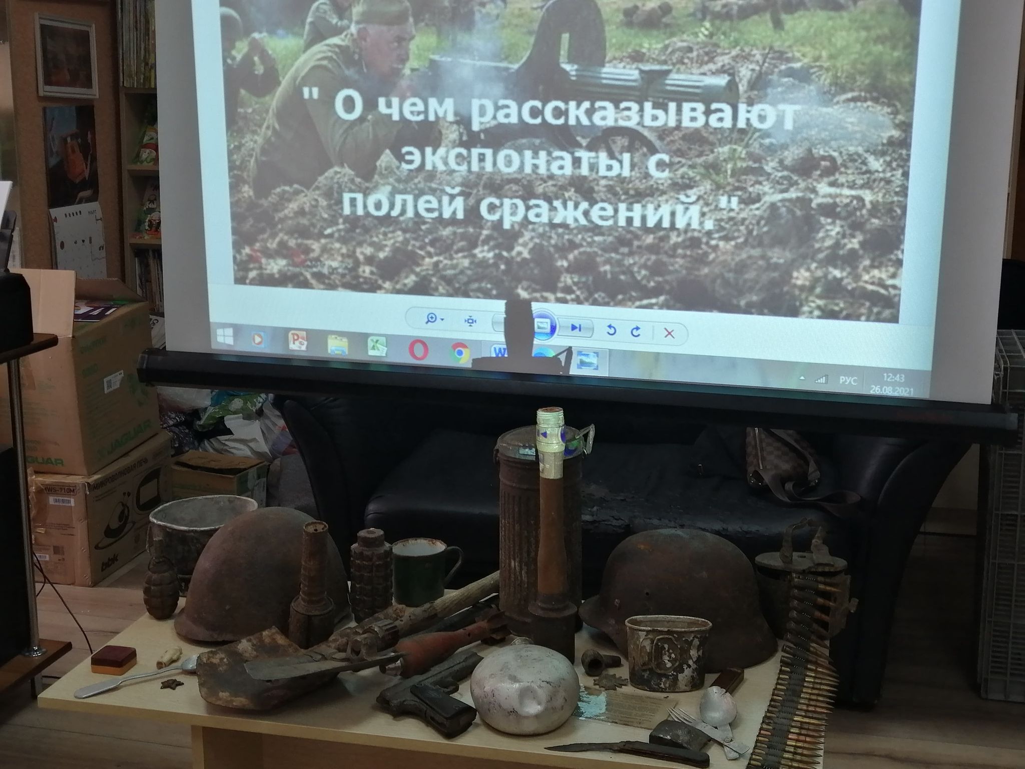 П-Покровская модельная библиотека представила 26 августа час истории " О чем рассказывают экспонаты с полей сражений."
