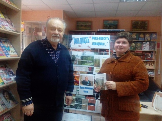 В библиотеке была оформлена книжная выставка "Учись прощать, учись просить прощенье...", посвященная творчеству Рыкова П.Г.