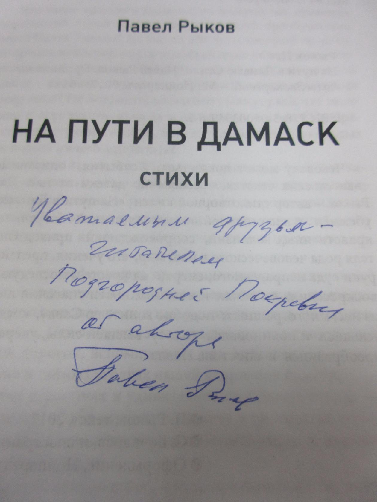 Хочу выразить благодарность П.Г.Рыкову . что посетил нас и презентовал свою новую книгу «На пути в Дамаск». Я осталась очень довольна встречей. Осталось много ярких впечатлений и невероятных эмоций.