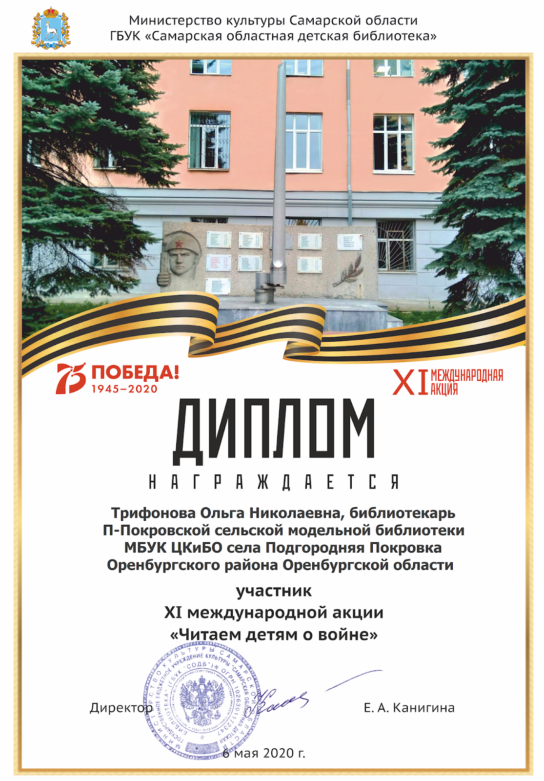 - ФИО читающего о ВОВ: Трифонова Ольга Николаевна