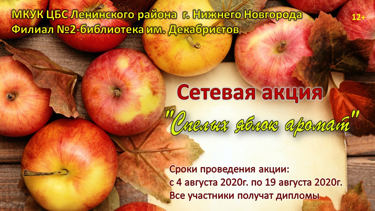 П-Покровская сельская модельная библиотека МБУК ЦКиБО с.П-Покровка Оренбургского района Оренбургской области, принимает участие в сетевой акции "Спелых яблок аромат". Организатор Акции - Муниципальное казенное учреждение культуры «Централизованная библиотечная система» Ленинского района г. Нижнего Новгорода филиал № 2 - библиотека имени Декабристов.