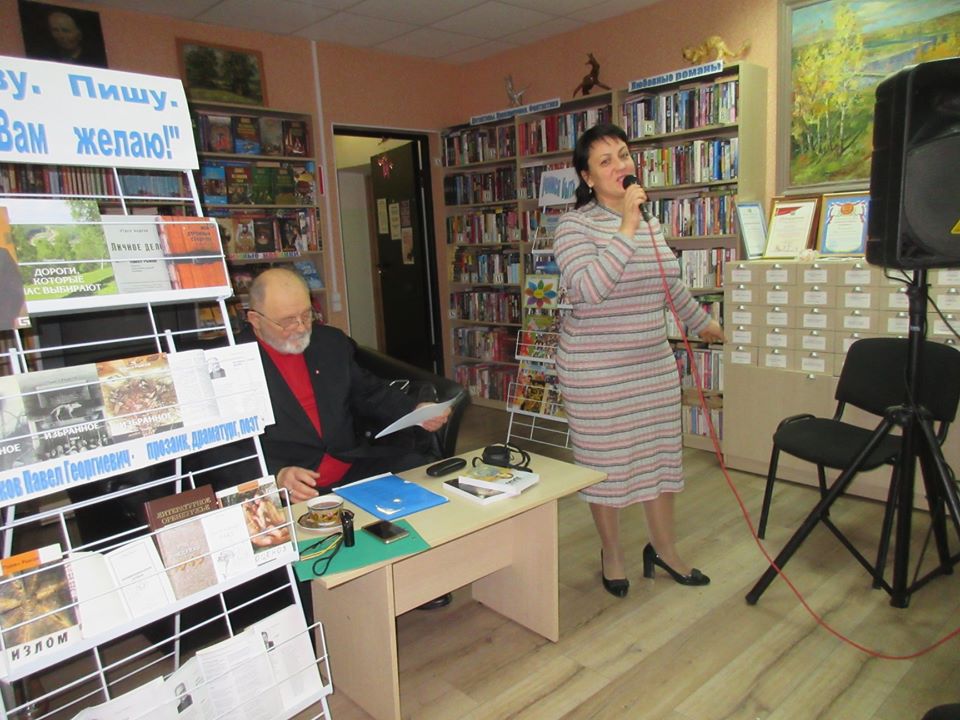 Читатели собрались охотно, даже из села Павловка приехали. Чтобы дать писателю немного отдохнуть, сделали музыкальную паузу, послушали русскую народную песню в исполнении Шмелевой О.В., директора МБУК ЦКиБО села П-Покровка. Получился самый настоящий праздник для ума и души.